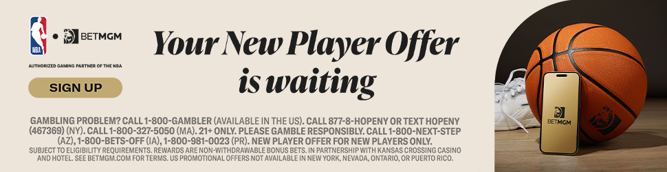 First Bet Offer for new customers only. Min. first deposit of $10. Subject to eligibility requirements. Rewards are non-withdrawable bonus bets that expire in 7 days. Bonus bets amount equals lost stake up to $1500. Must be physically located in AZ, CO, IL, IN, IA, KS, KY, LA, MA, MD, MO, MI, NJ, NC, OH, PA, TN, VA, DC, WV, or WY. Void where prohibited. In partnership with Kansas Crossing Casino and Hotel. See BetMGM.com for Terms. US promotional offers not available in Mississippi, New York, Nevada, Ontario, or Puerto Rico. Please Gamble Responsibly. Call 1-800-NEXT-STEP or text NEXTSTEP to 53342 (AZ), 1-800-BETS-OFF (IA), 1-800-981-0023 (PR).